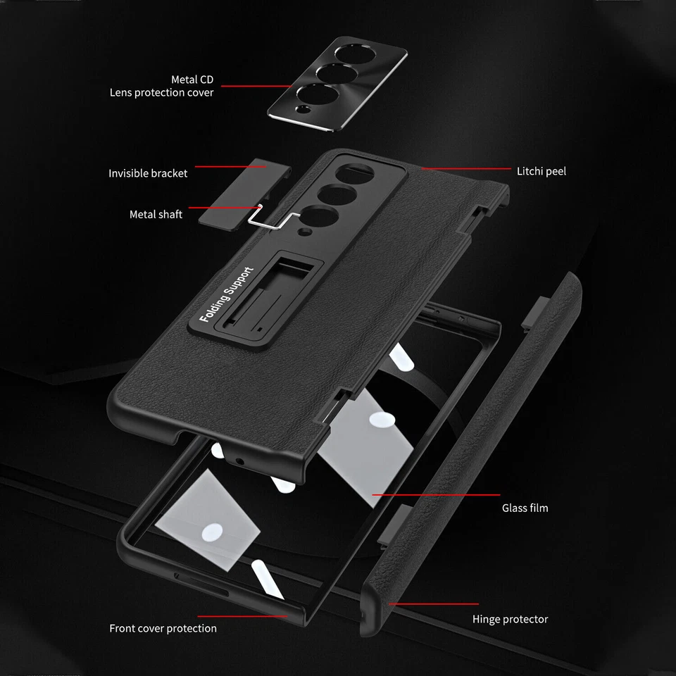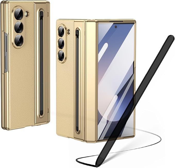 Business- Style Phone Case For Samsung Galaxy Z-Fold 5 & Z-Fold 6, With Spen, Screen Protector and Leather Strip.